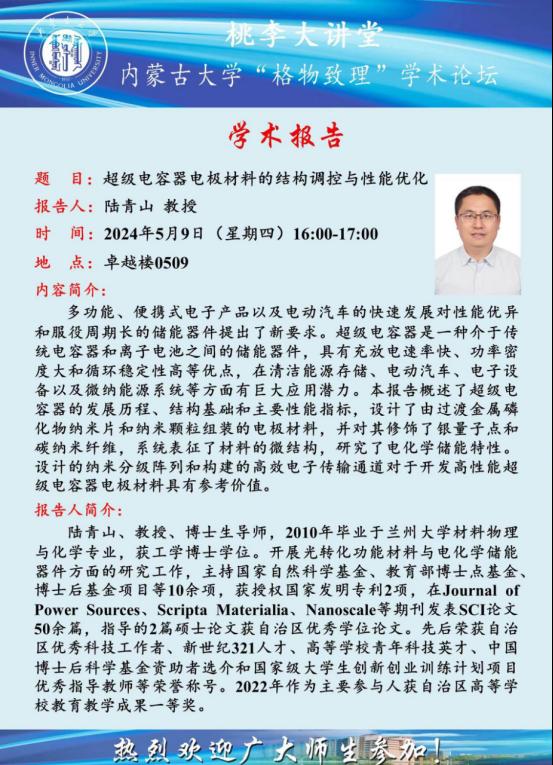 2024年5月9日学术报告 陆青山:超级电容器电极材料的结构调控与性能优化