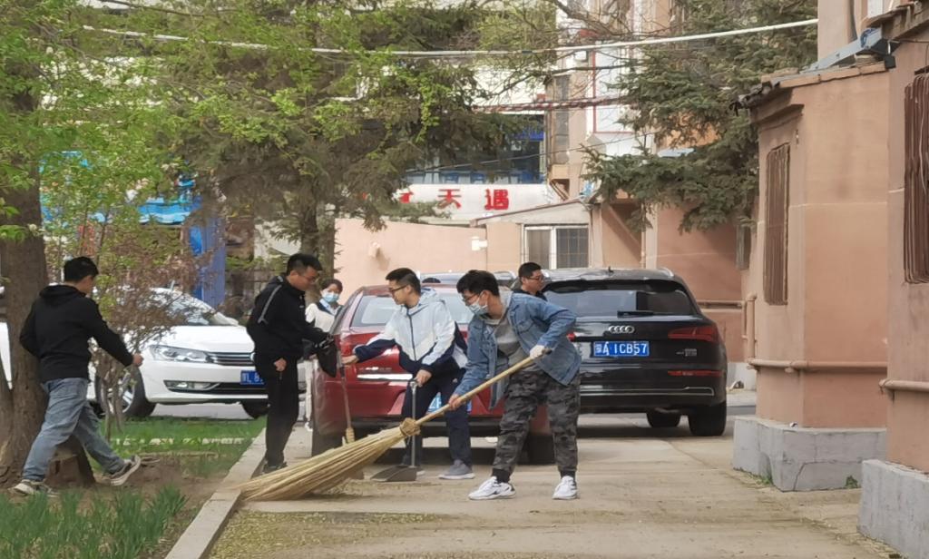 此次活动各位同志从卓越楼出发到北区家属院进行义务清扫活动。郭丹阳、卢泽成、孙慧敏、赵雷四位研究生党员同志分别带领四个小组到北校区校园以及家属区的各个角落,清扫落叶、清理废物。挽起袖子,抡起扫帚,在实践中体会中国共产党人的担当和使命,追忆中国共产党人的奉献精神,进一步坚定了“为人民群众服务”的初心和使命。在四月的春风中,全体党员同志互相分享劳动带来的欢愉,增强了对党的事业的热爱和忠诚。
