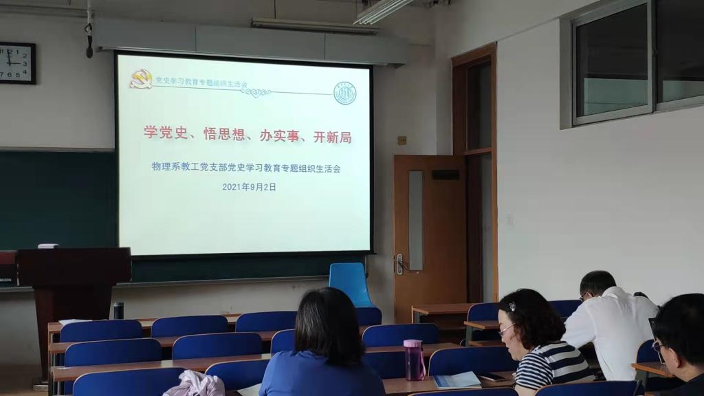 9月2日,ok138cn太阳集团529物理系教工党支部书记刘志锋副教授与电子科学与技术系教工党支部书记陆青山副教授分别在卓越楼0504室与卓越楼0505室主持召开党史学习教育专题组织生活会;9月7、8日,研究生党支部书记张璐强老师与本科生党支部书记李妮老师分别在卓越楼阶梯教室二与卓越楼0617主持召开了党史学习教育专题组织生活会。