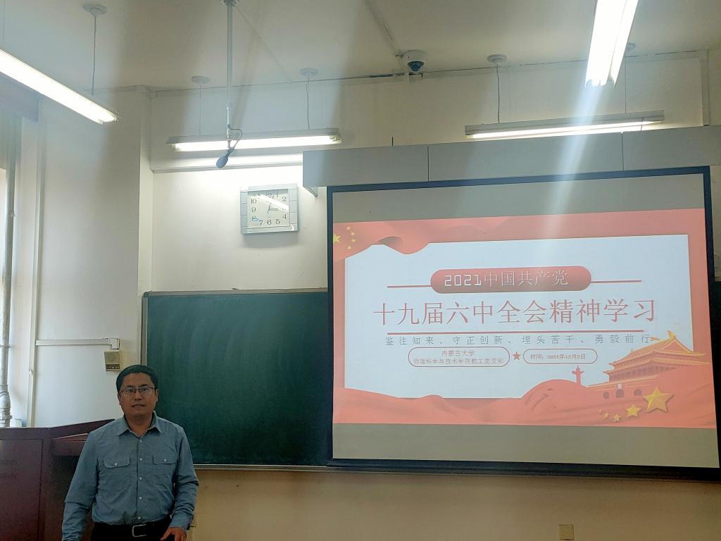 为深入学习贯彻党的十九届六中全会重要精神,领会《中共中央关于党的百年奋斗重大成就和历史经验的决议》历史价值和时代意义,2021年12月2日下午3:00,ok138cn太阳集团529教工党支部在卓越楼0507教室召开专题党日活动,物理系和电子科学与技术系教工党员共计30余人参加了会议。